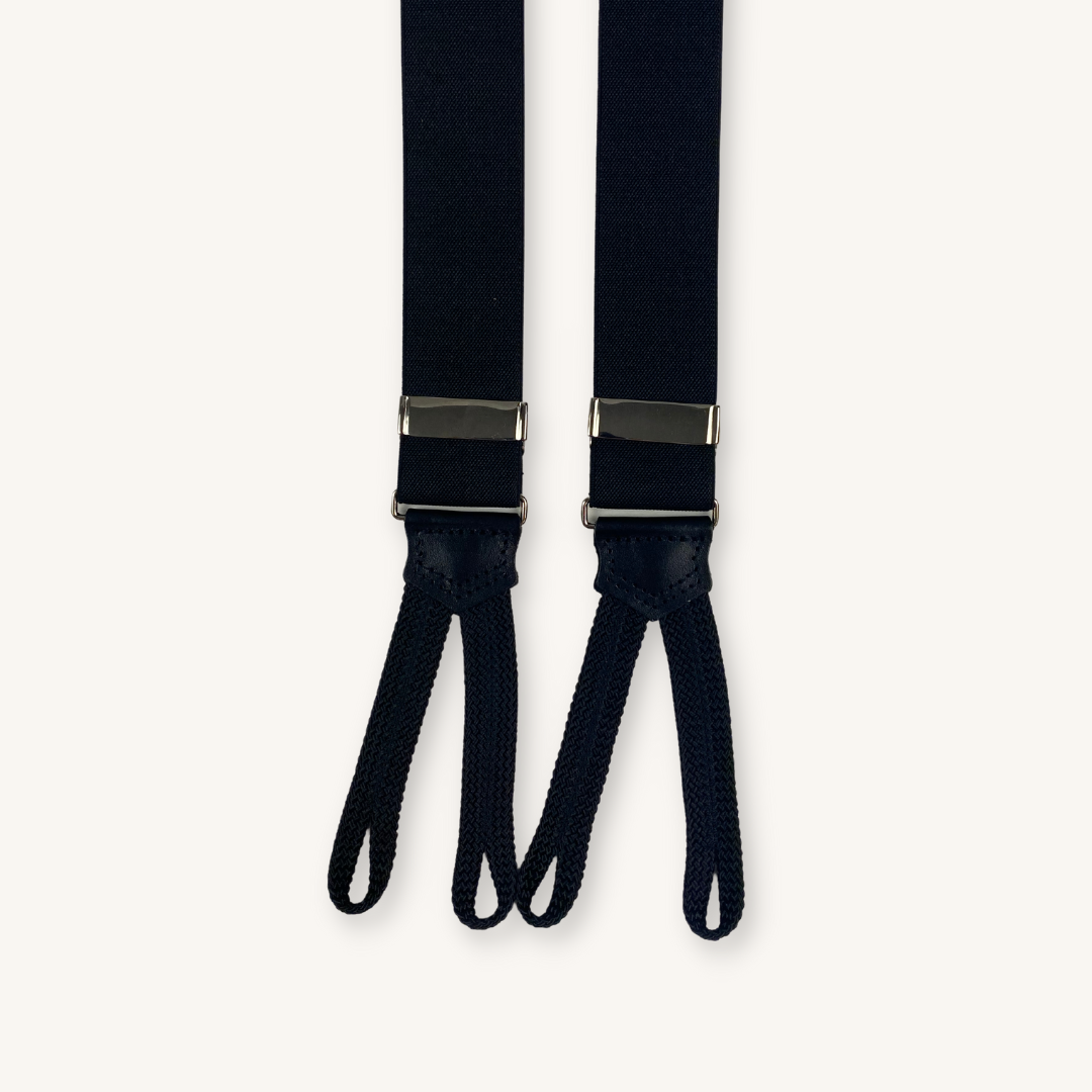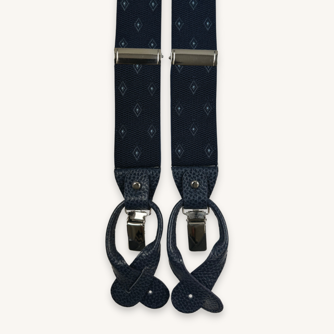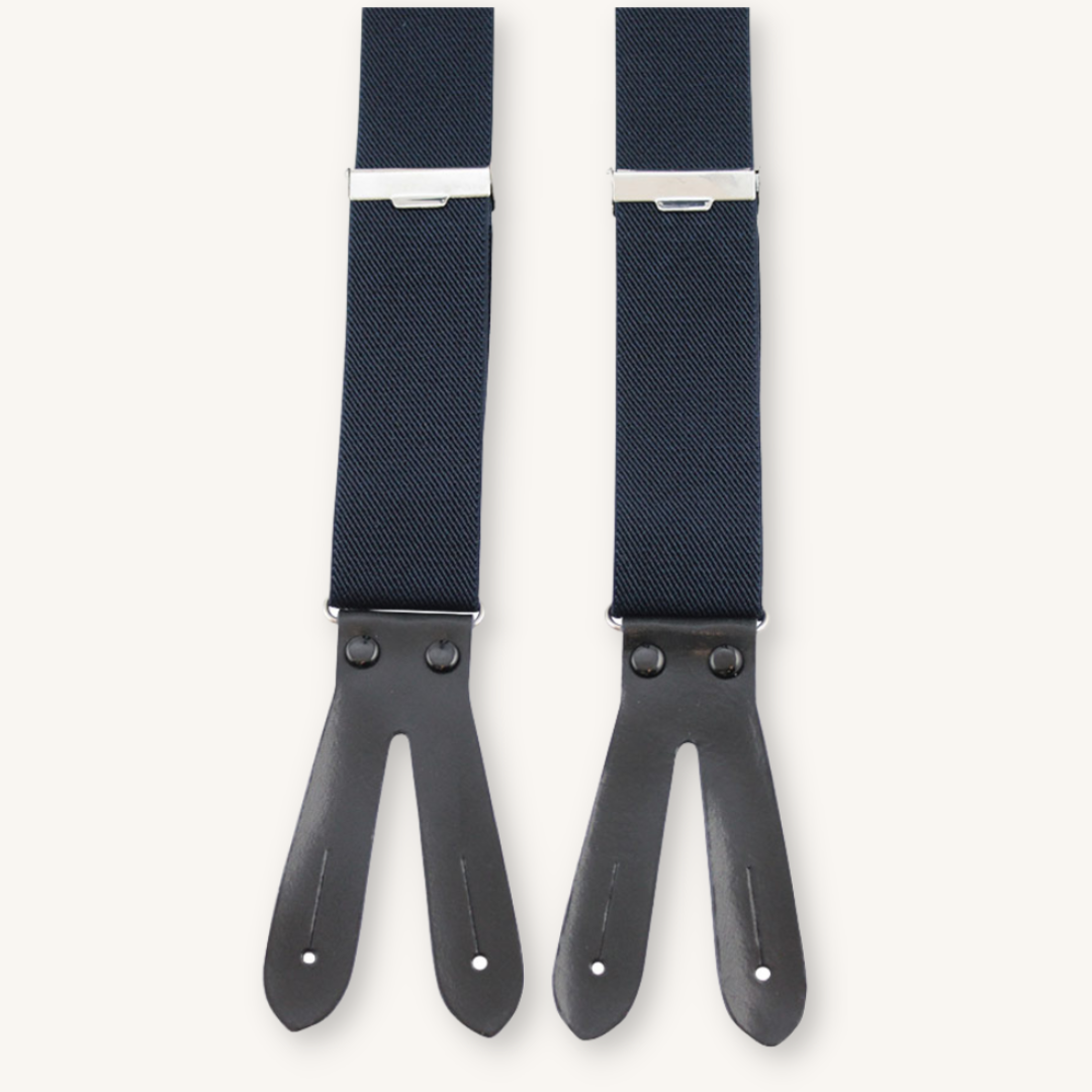 Navy Suspenders With Leather