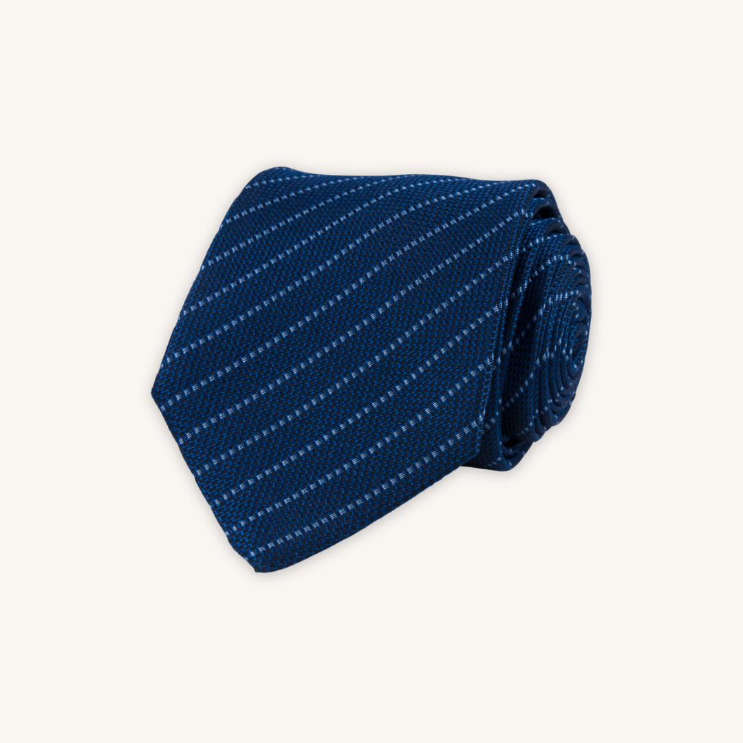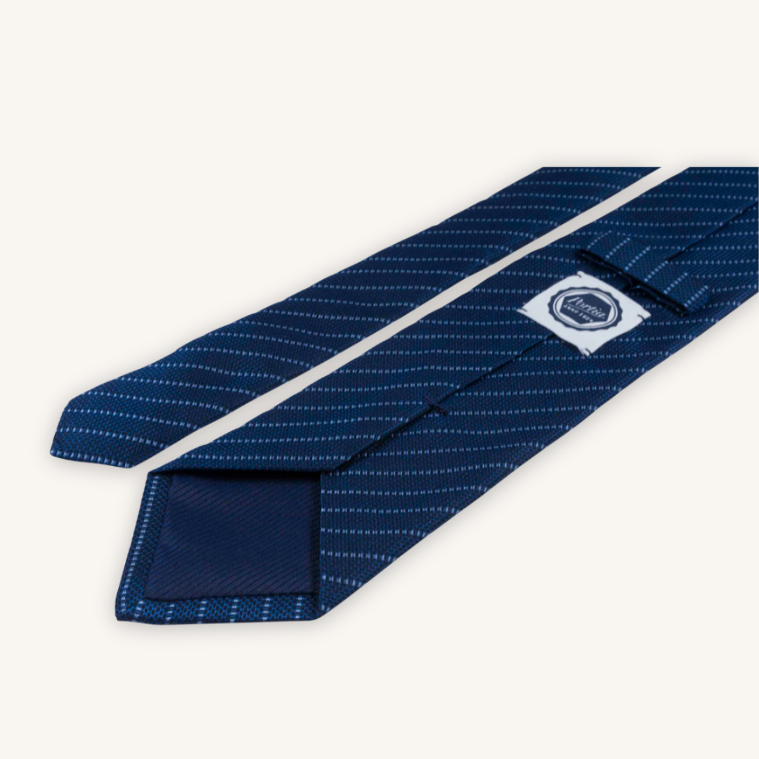 Classic elegant tie in a lovely blue colour with discreet stripes. This tie works for any occasion and is easily combined with different styles. The Silk brings a refined weaving structure to the fabric, crafted in Como, Italy. It is an elegant and classic tie and a perfect complement to a plain suit or blazer.
