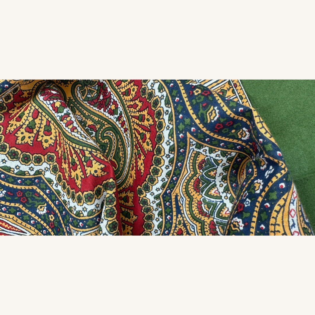 Classic paisley bandana in cotton with a green border. Add to a more casual or sporty style. Also available in other classic colours.