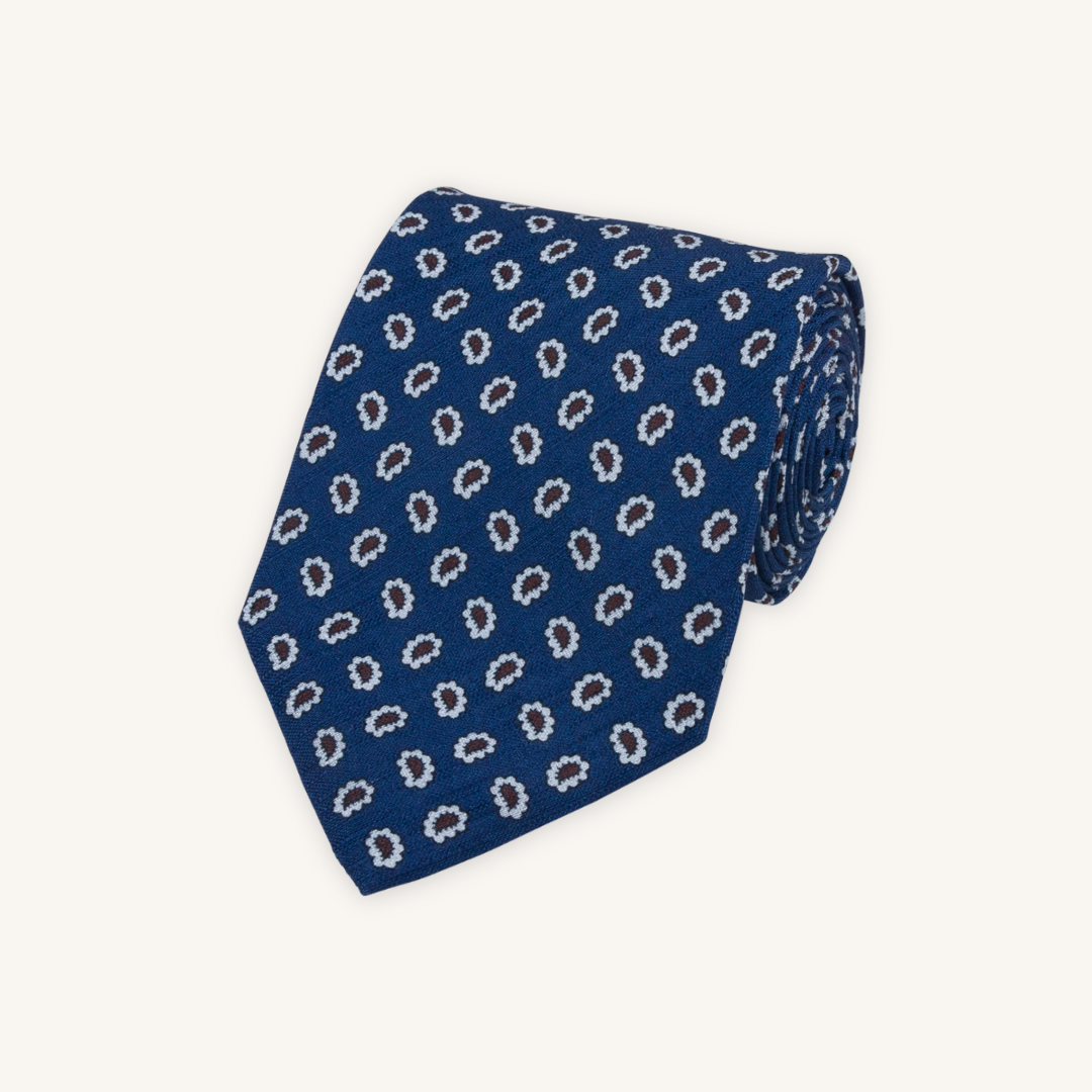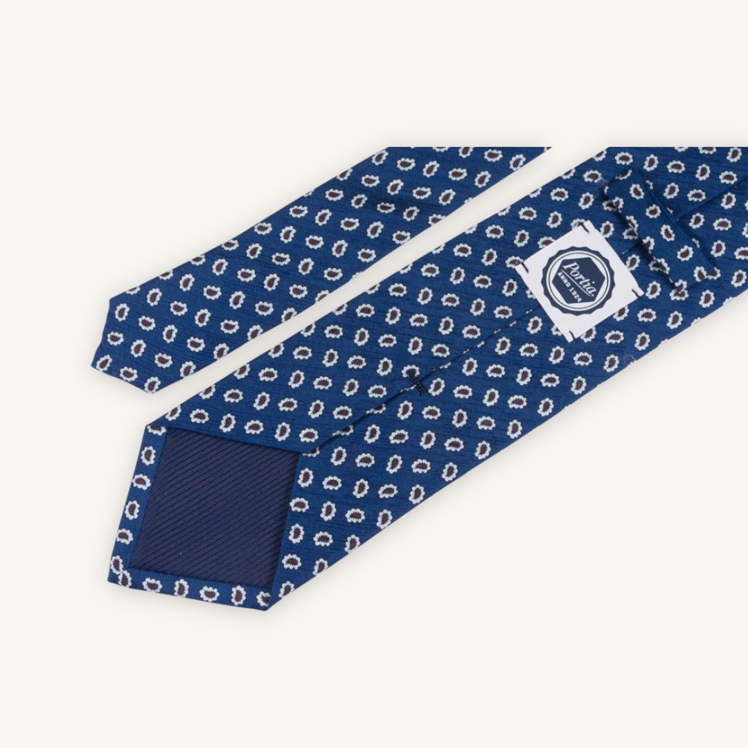 This retro paisley tie is made of a small silk and cotton blend and is irresistible. The fabric's unique texture results from the combination of silk and cotton. The beautiful colours of this woven fabric from Como, Italy, blend seamlessly. If you want a tie that stands out, this masterpiece is the one to go for. Pair it with a white or brown pocket square for a perfect look.
