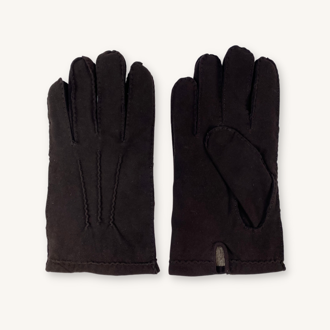 A classic elegant suede glove in dark brown with a soft wool lining in sandy beige makes these gloves warm and comfortable. Comes in different sizes S-XXL. Glove size 7-11
