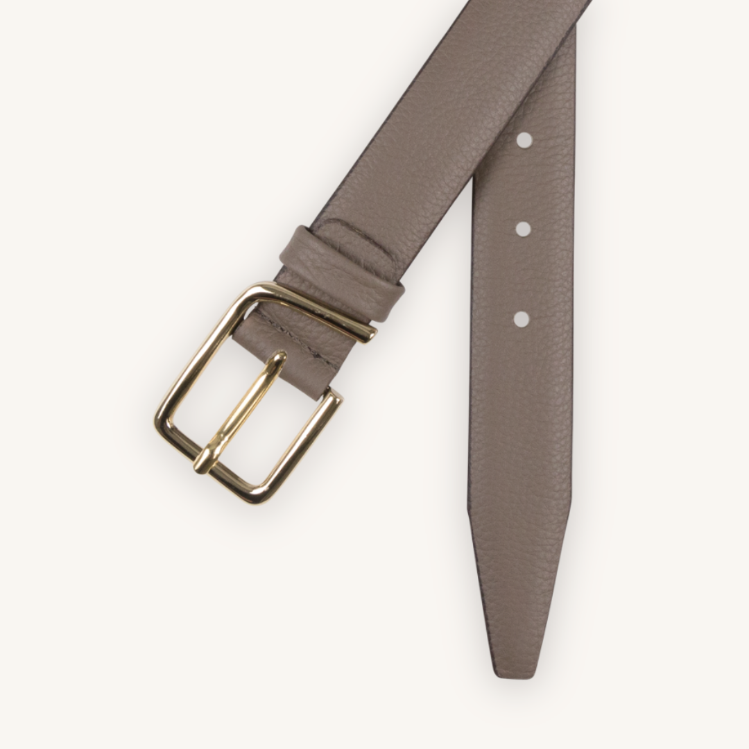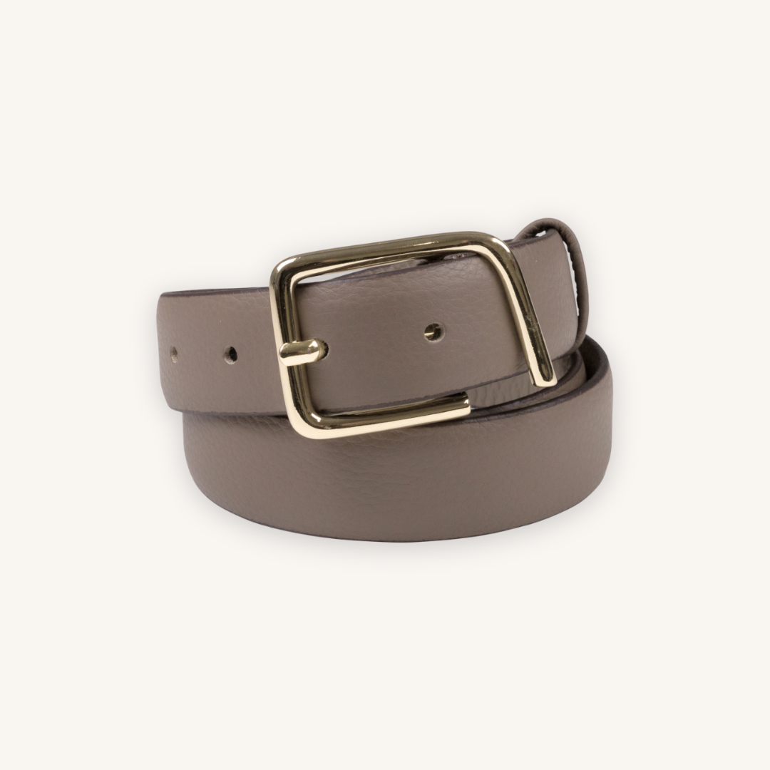 Introducing our exquisite Women's Exclusive extra-soft taupe Leather Belt with a stunning, rounded, silver-coloured buckle. A timeless and elegant accessory crafted with precision and care in the heart of Italy, this belt embodies sophistication, quality, and versatility.