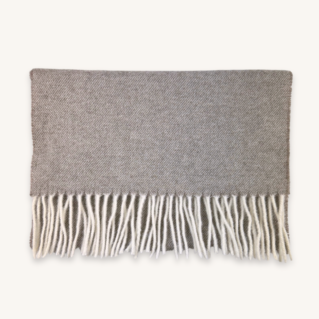 This cosy and thick wool scarf will keep you warm and stylish during the fall and winter. Its classic herringbone pattern in light beige and off-white creates a timeless essential that will last for seasons, whether dressing up or keeping it casual.