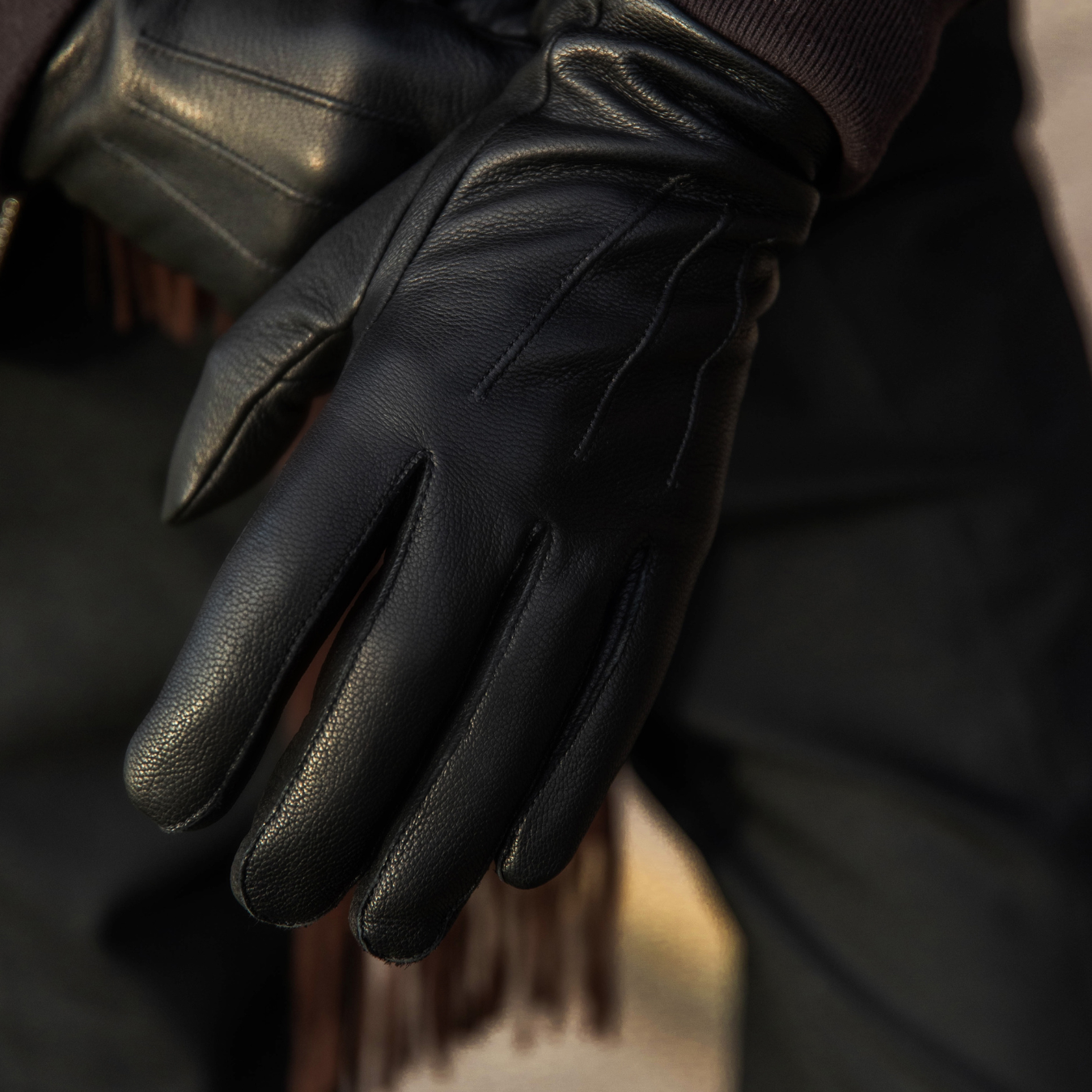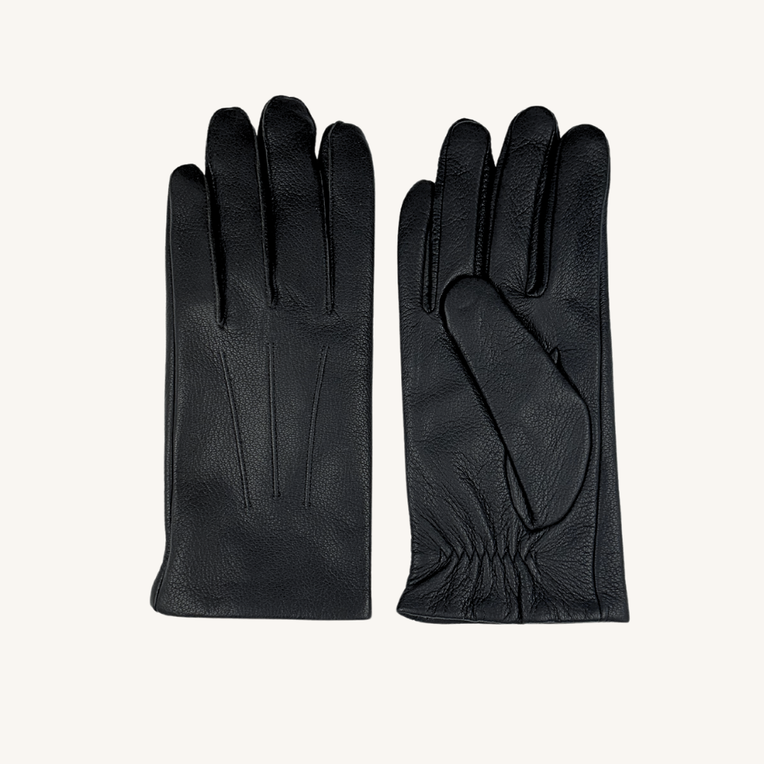This classic and elegant leather glove is made of structured and extra-soft goat leather. The beige wool lining inside provides extra warmth. It comes in sizes S to XXL, with glove sizes from 7 to 11.
