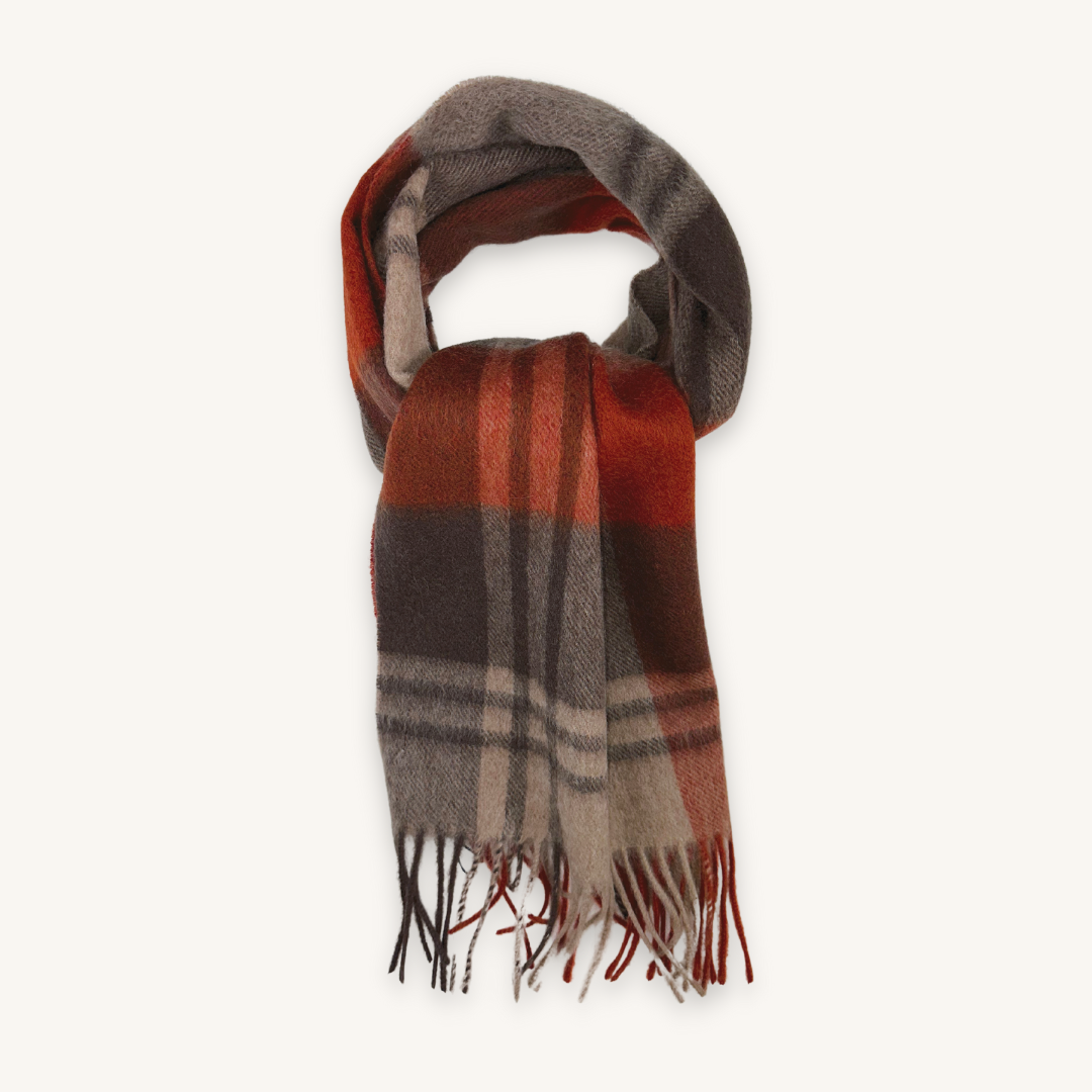Classic Wool Scarf features a tasteful blend of warm autumn colours such as orange, beige, and brown in a traditional squared pattern. Made from high-quality wool, these scarves are designed to keep you cosy and comfortable during the chilly winter months. They're also a great gift idea.
