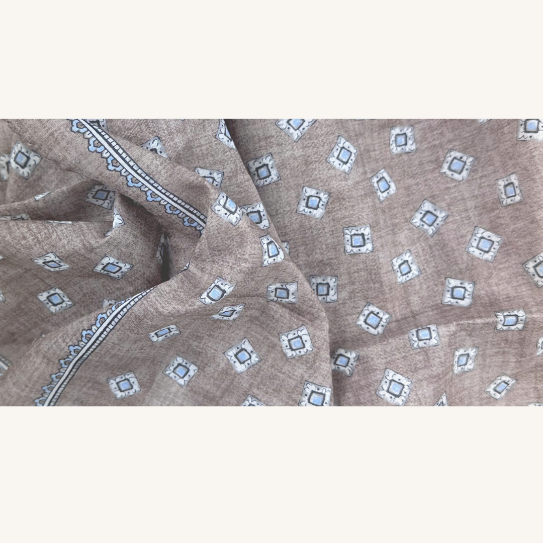 Bandanas are a great addition to your everyday style. With a square pattern printed on a melange beige ground with a detailed border. Our Bandanas are crafted from high-quality materials. They are a fantastic addition to your everyday style. With its easy-to-wear design, this bandana allows you to achieve a stylish look in seconds. Simply tie it in a loose knot and pair it with a knitted sweater, shirt, or T-shirt.