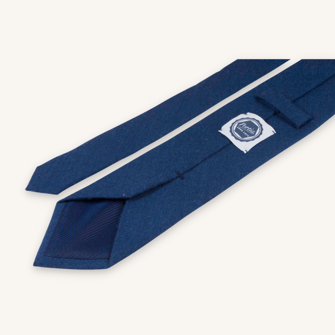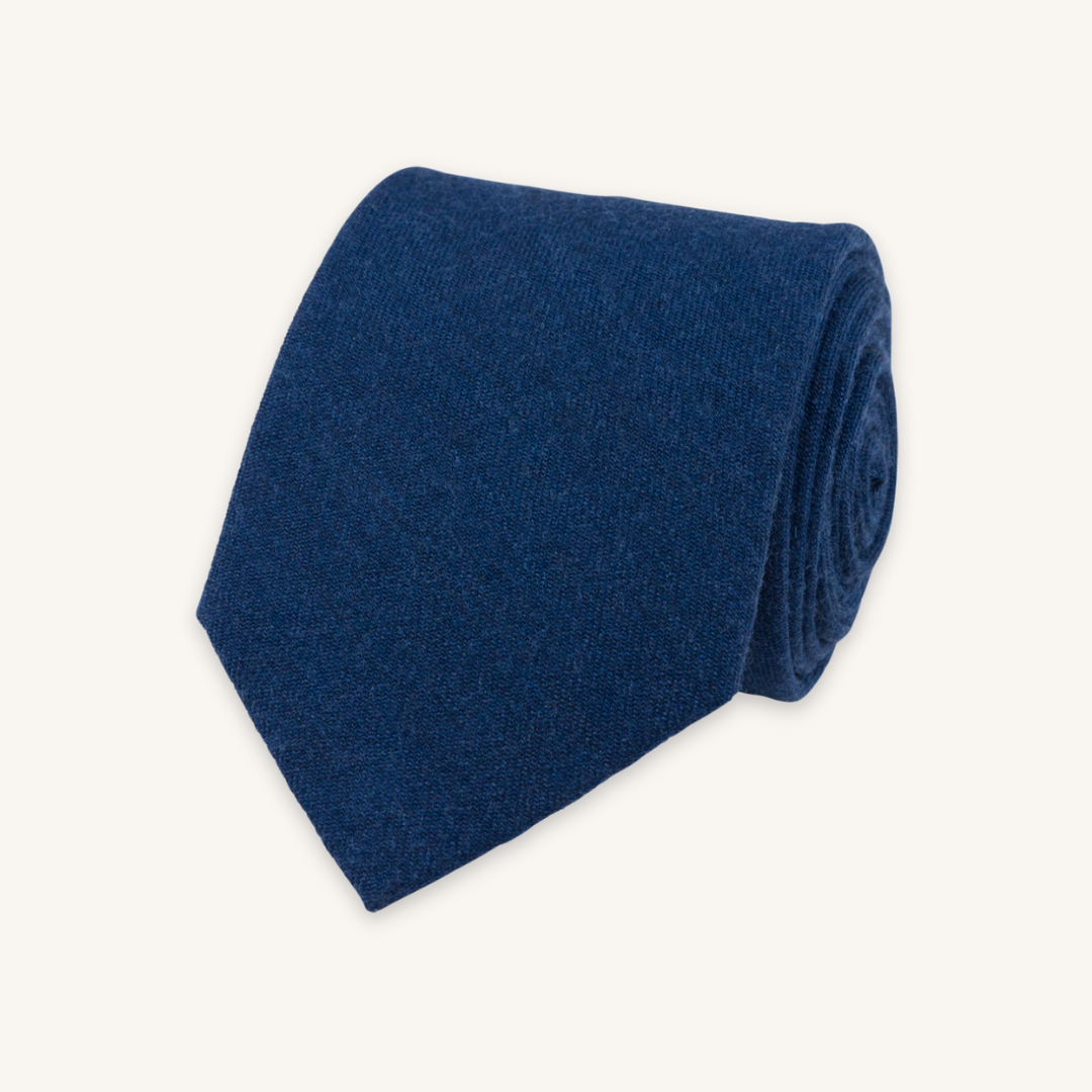Solid Melange Midblue Wool Tie, a timeless accessory that combines sophistication with subtle texture. The luxurious Italian wool fabric provides a refined look and a comfortable and substantial feel, making it an essential addition to your wardrobe. With the option to accessorize with a matching or contrasting pocket square, this tie offers endless possibilities.