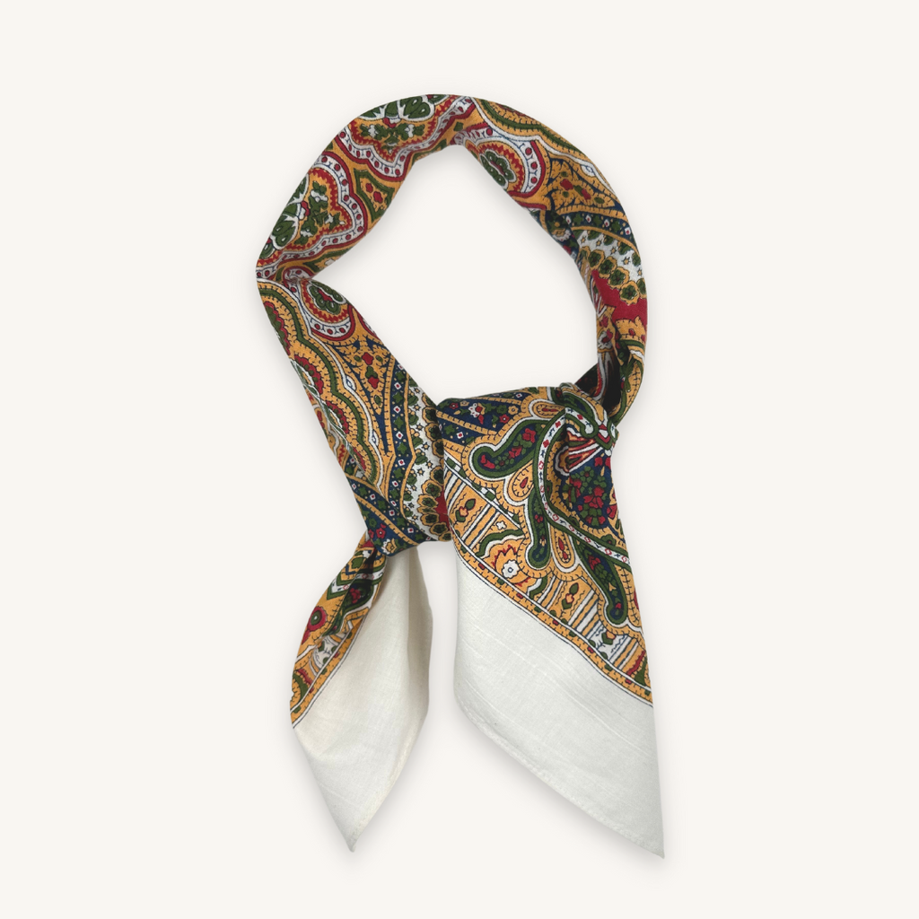 Classic paisley bandana in cotton with a white border. Add to a more casual or sporty style. Also available in other classic colours.