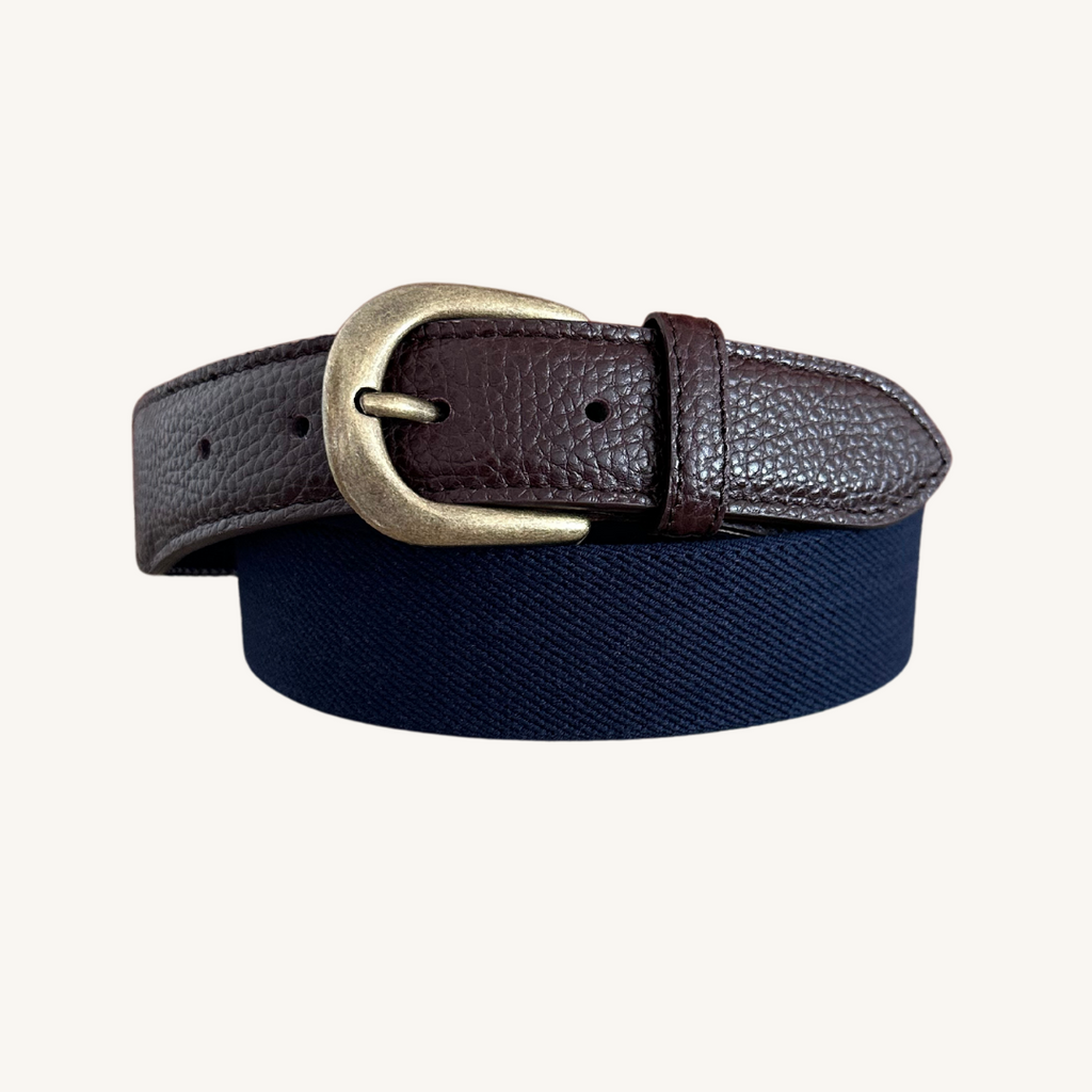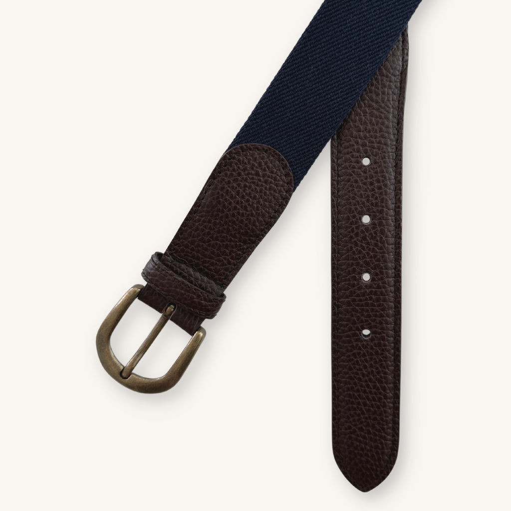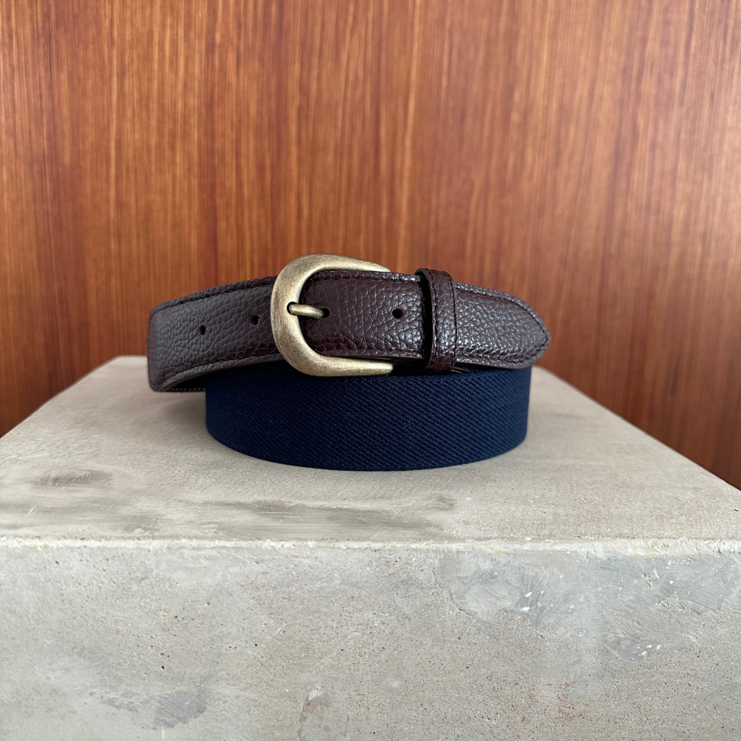 A more updated and exclusive sailor belt made by hand in northern Italy. It is made with a recycled cotton elastic band with very nice details in dark brown bovine leather and a brass buckle. Add this belt to your casual and everyday style.