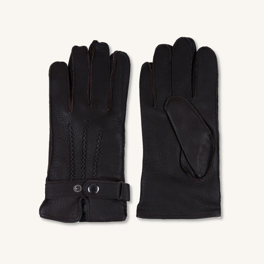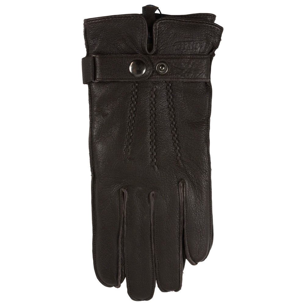 A classic elegant leather glove in dark brown, with an adjustable leather strap to keep the cold out. The lining is in soft wool to make them extra warm during the winter season. Comes in different sizes, S-XXL. Glove size 7-11.