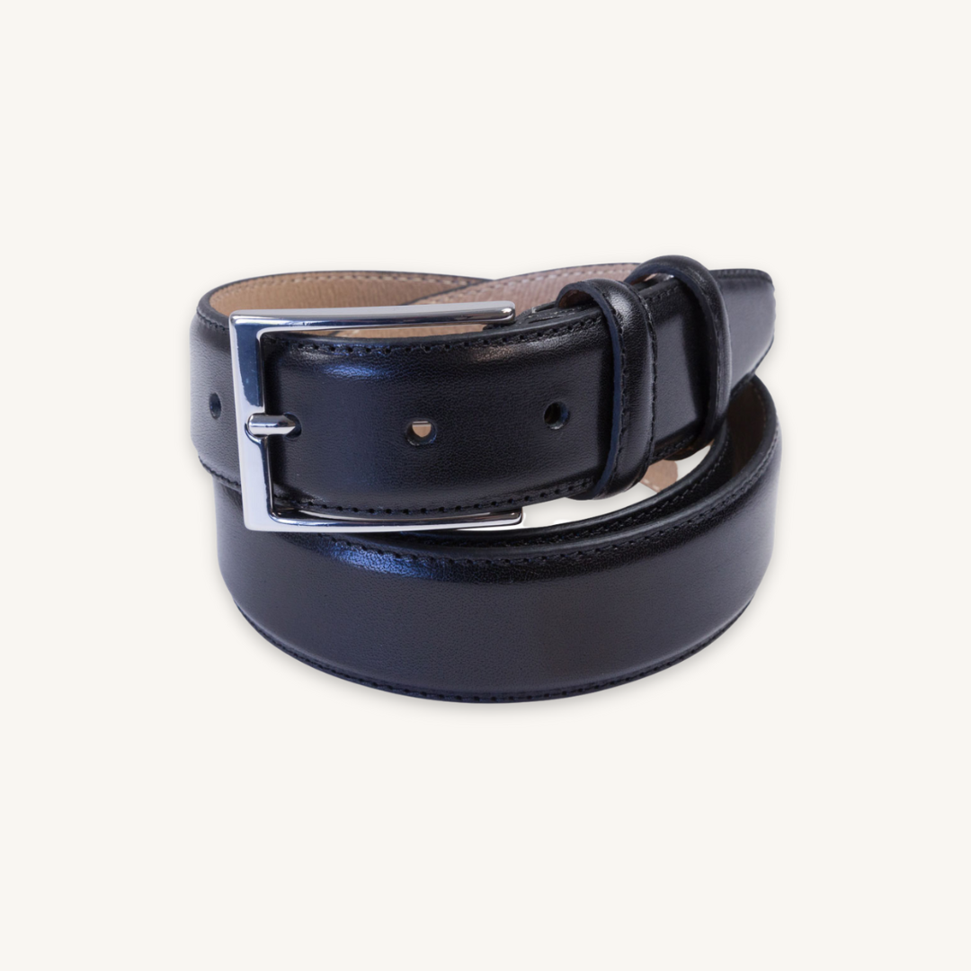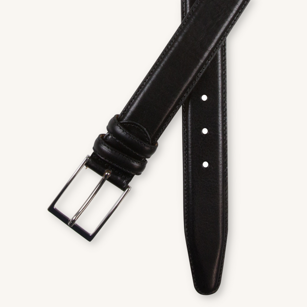 Discover the Black Leather Belt. This is a classic and timeless belt in soft leather made in Italy. The leather belt works great with both jeans, chinos and a suit. It has a square-shaped buckle in silver coating.
