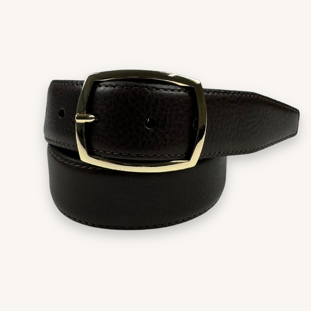 Elegant women's belt in extra soft brown full-grain leather with a stunning gold-coloured buckle. A timeless accessory crafted with precision and care in the heart of Italy. It is a timeless piece that will last season to come. Pair it with your favourite jeans for a chic and laid-back vibe, or use it to cinch your favourite suit and jacket—order yours today and make a statement wherever you go.