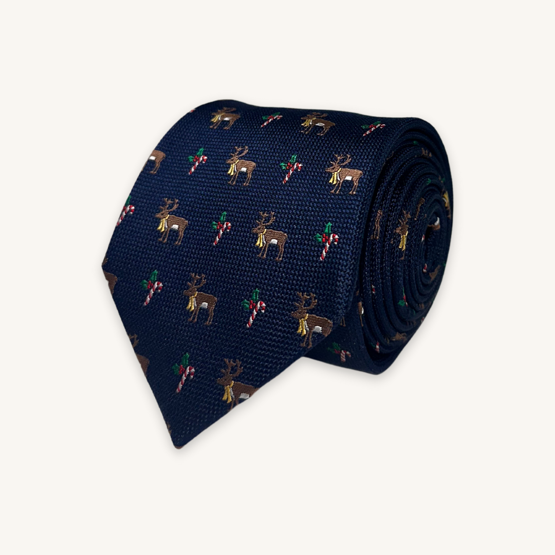 Ho ho ho! Christmas is around the corner. Go for a festive tie. This is a beautifully detailed pattern of reindeers and candy cane. Embrace the holiday season with this lovely Christmas tie.