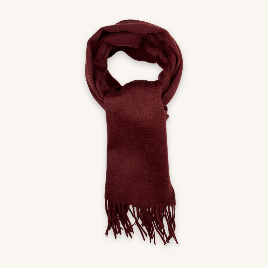 Den här mysiga och eleganta ullhalsduken kommer att hålla dig varm under höst- och vintersäsongen. Den är tillverkad med fransar och designad i en vacker vinröd färg. Det är ett tidlöst must-have som kan bäras i åratal, oavsett om du klär upp dig eller håller det avslappnat. Även en perfekt present till någon du bryr dig om.