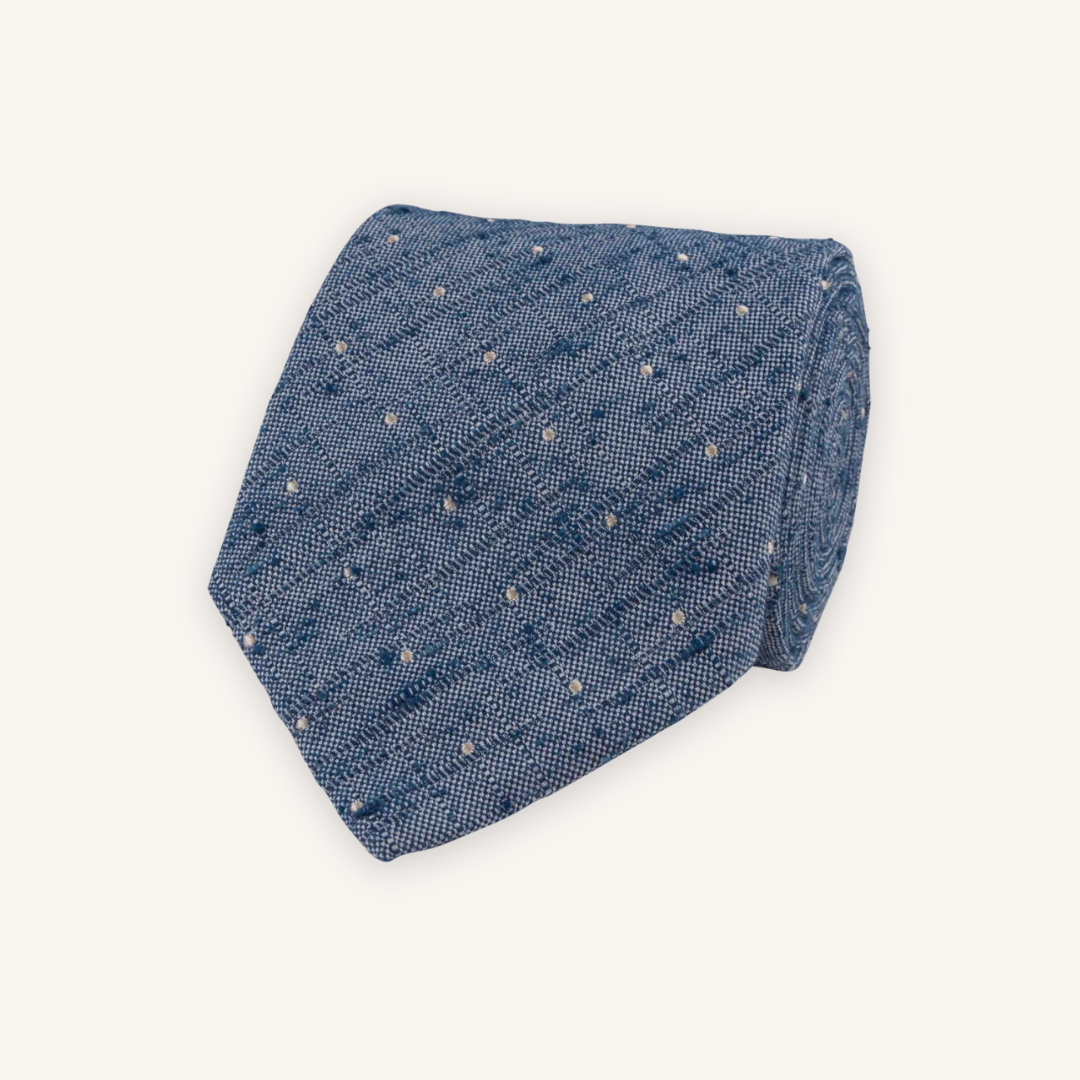 Blå slips tillverkad av exklusiv Shantungsiden från Como, Italien – ett material känt för sin unika textur. Den raffinerade strukturen skapar en lätt texturerad finish med en överdådig touch som utstrålar lyx och karaktär. Perfekt att bära med en skräddarsydd kostym för en polerad look eller som en elegant detalj i en mer avslappnad stil. Ett tidlöst accessoarval som tillför det lilla extra.