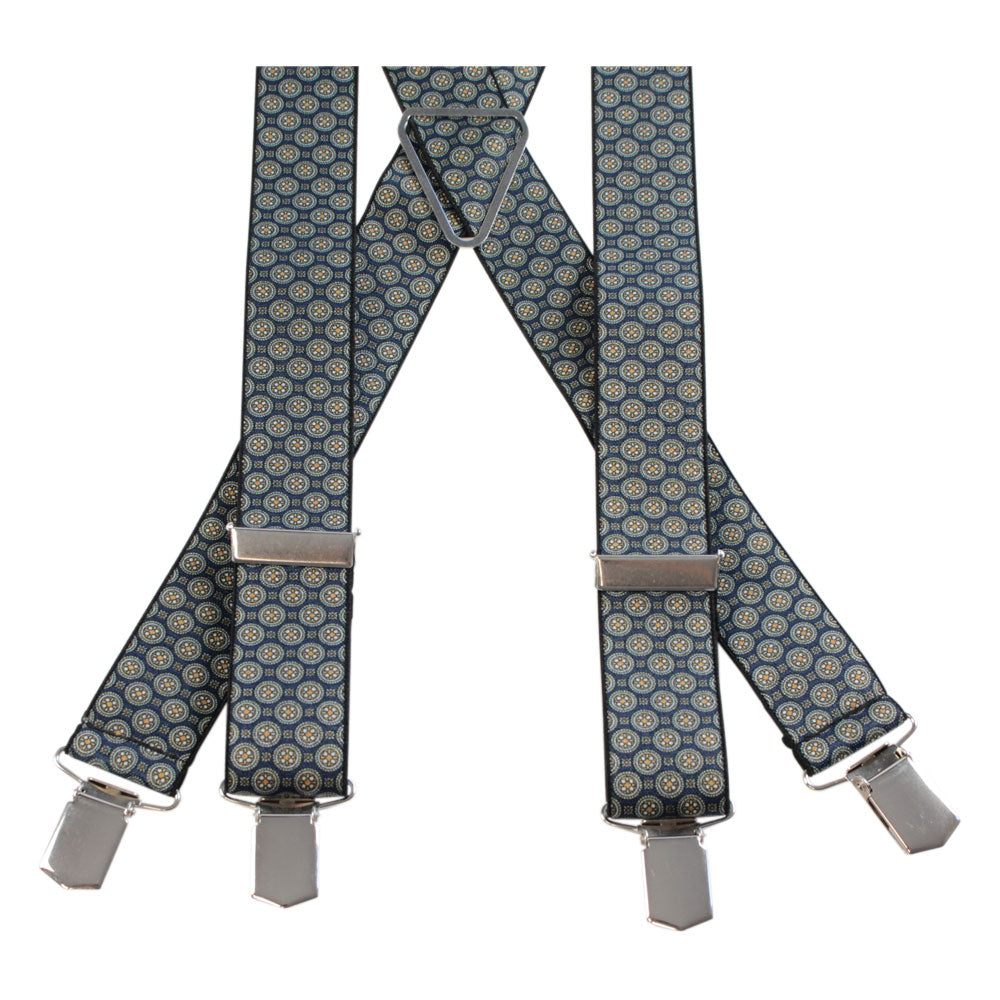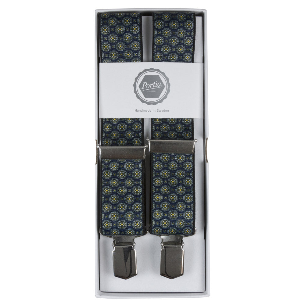 Blå hängslen. Upptäck våra unika blå hängslen i medaljongmönster som sticker ut.